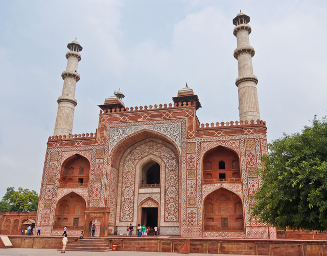 Akbar's tomb is the tomb of the Mughal emperor, Akbar and an important Mughal architectural masterpiece. It was built in 1605–1613 and is situated in 119 acres of grounds in Sikandra, a suburb of Agra, Uttar Pradesh, India. The opulent 17th-century Mughal mausoleum built from marble & red sandstone with landscaped gardens, Akbar's Tomb, is 15 kilometres away from Taj Inn Hotel, Agra.