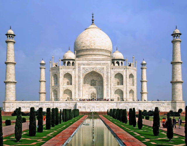 Christened as one of the seven wonders of the world, Taj Mahal is a 17th-century, Mughal-style, marble mausoleum with minarets, a mosque & famously symmetrical gardens. The Taj Mahal is an ivory-white marble mausoleum on the south bank of the Yamuna river in the Indian city of Agra. It was commissioned in 1632 by the Mughal emperor, Shah Jahan, to house the tomb of his favourite wife, Mumtaz Mahal. Taj Inn Hotel, Agra, is just over a kilometre away from the Western Taj Mahal Gate..